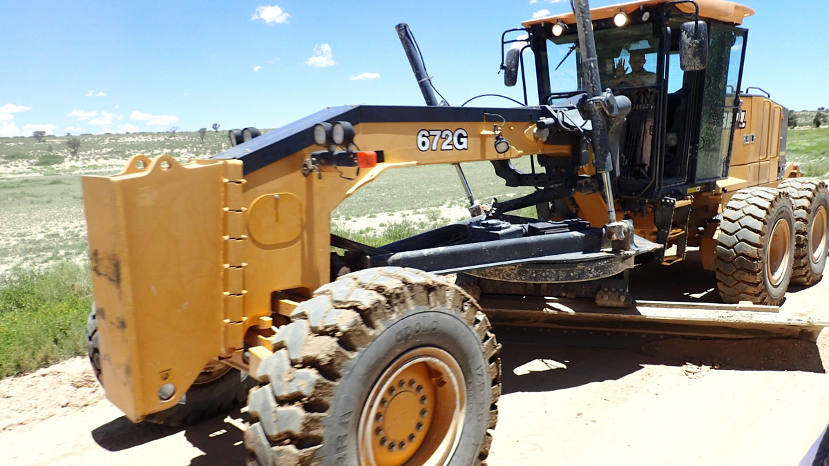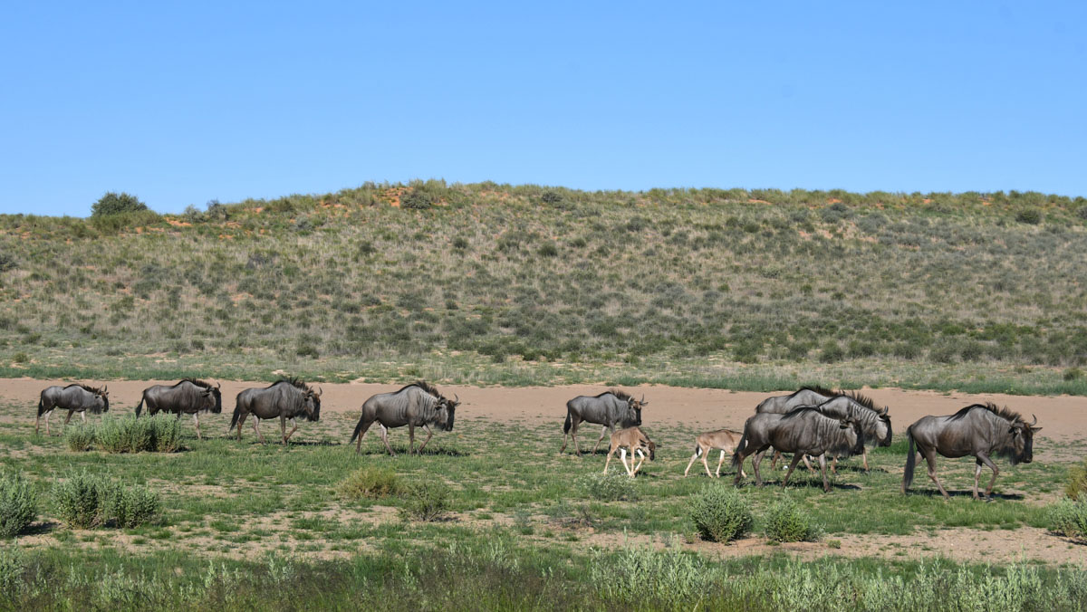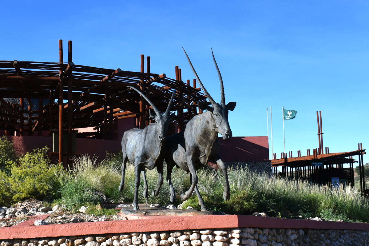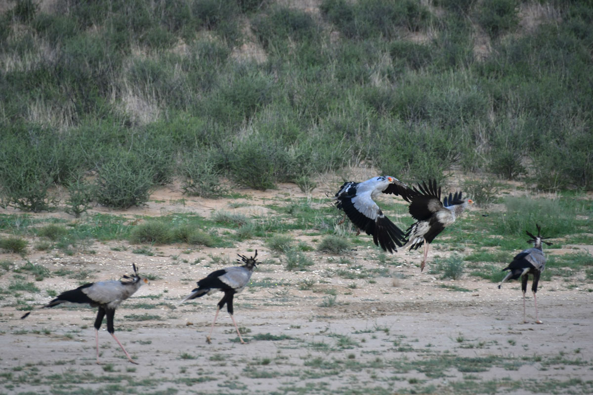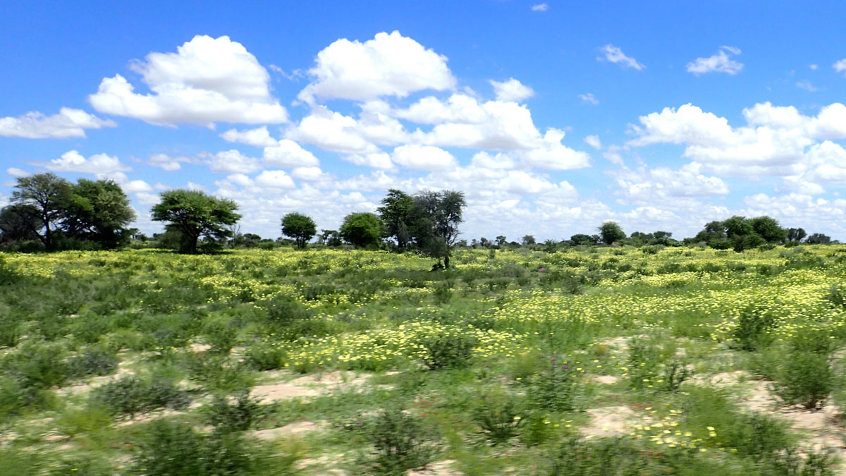 ハボローネからカラハリ・トランスフロンティア公園のボツワナ側マブアシューベ地区のゲートへ直接入園しました。ゲートには新しく公園の説明や紹介の看板が立てられていました。晴れたり曇ったり、時折シャワーがやってくるという天候でした。ゲームドライブ中も周囲の離れた場所ではシャワー。晴れると日差しが強く日焼け止めが必要です。