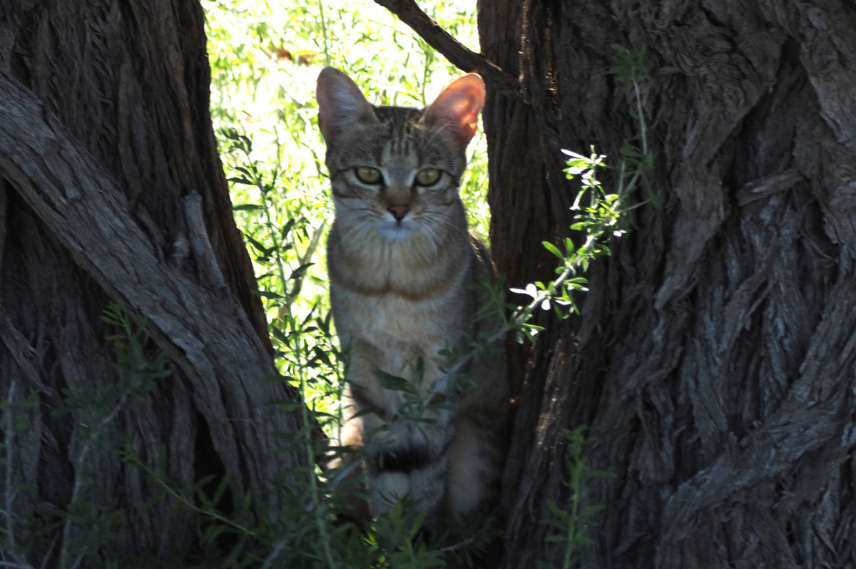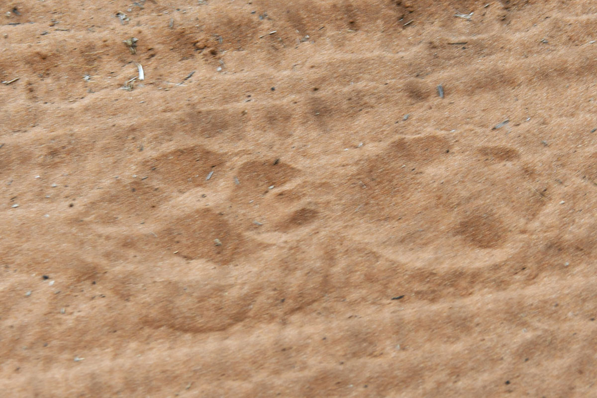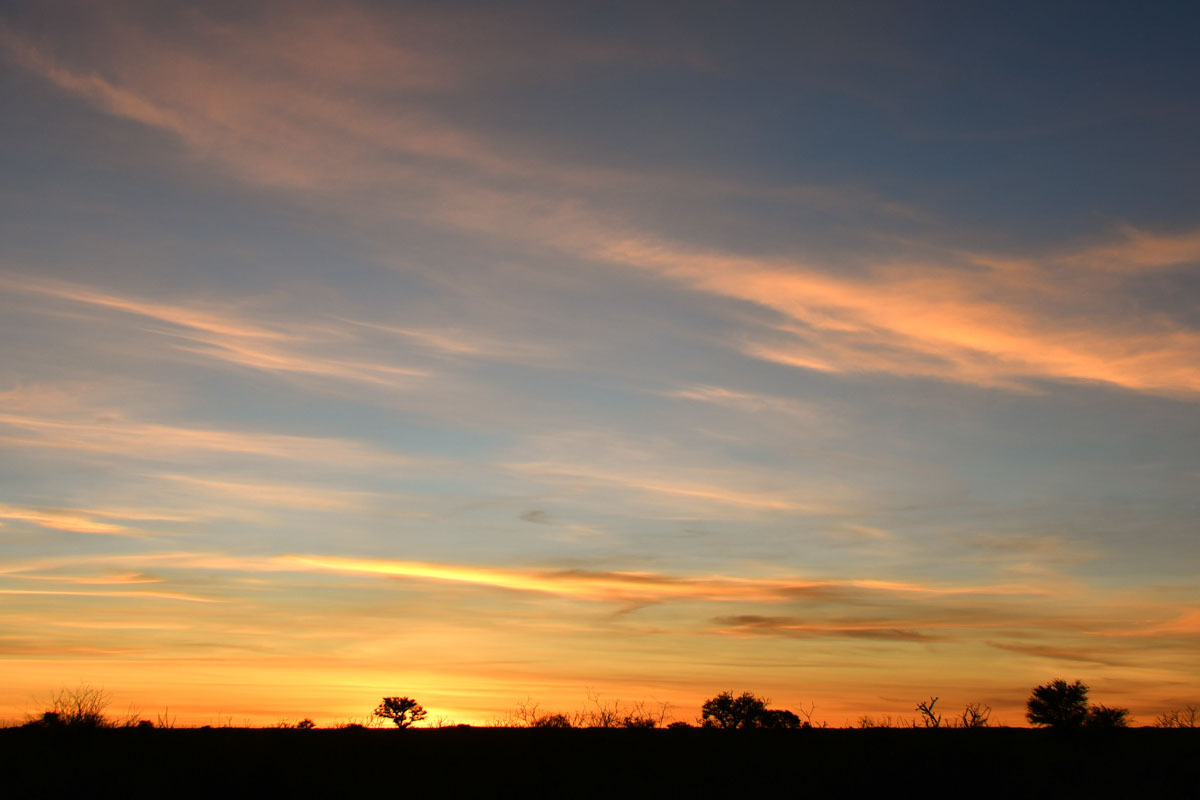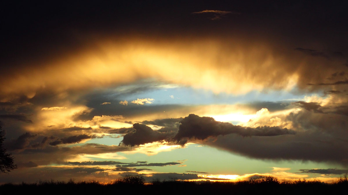 毎夕、ナミビアの方角に稲光が見えました。フライも張ってキャンプ再開です。夜寝るころになると強い風が吹きました。しかし次の夜中にいつもに増してテントを揺るがすような風と雷鳴が聞こえて来たのでサイドのフードのチャックを閉めに起きたのちしばらくして激しい雷雨がやってきました。テントが浮き上がったように感じられたので飛ばされないかと心配しました。ベッドと荷物を端に寄せて重石代わりにしました。次の朝、外に出てみるとL型のタイヤレンチが深々とペグの代わりに打ち込まれていました。コック兼キャンプマスターのティモシーのおかげです。ただ、テントには少し雨水が入っていました。しかし昼間は強い日差しが差し込んできます。