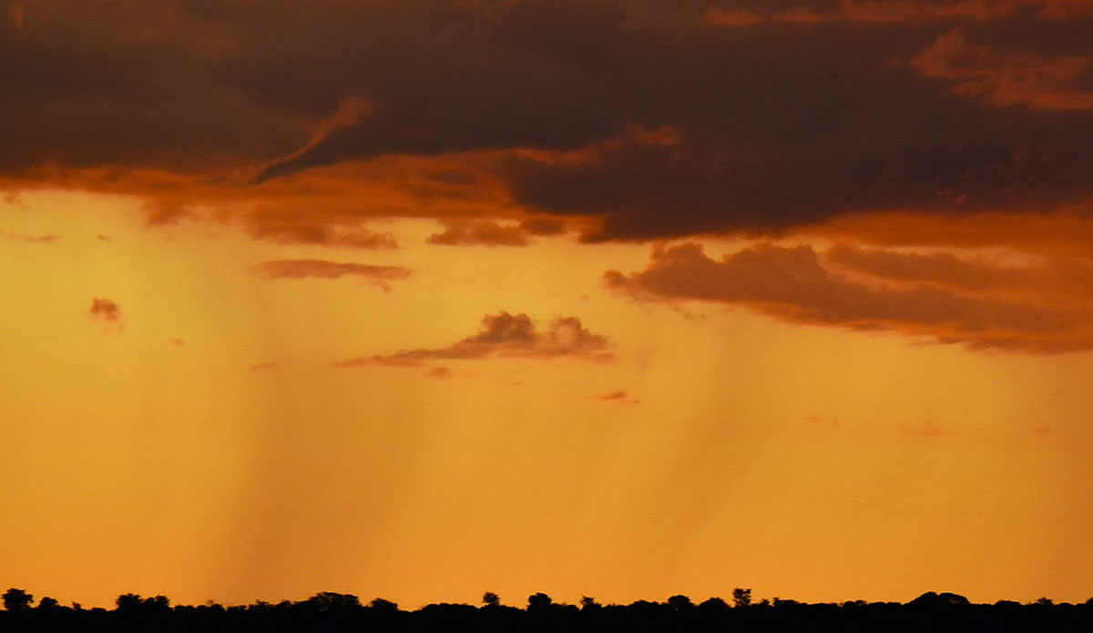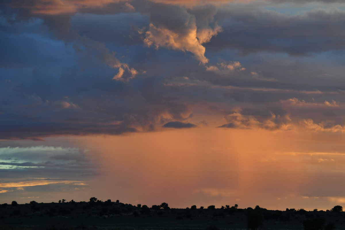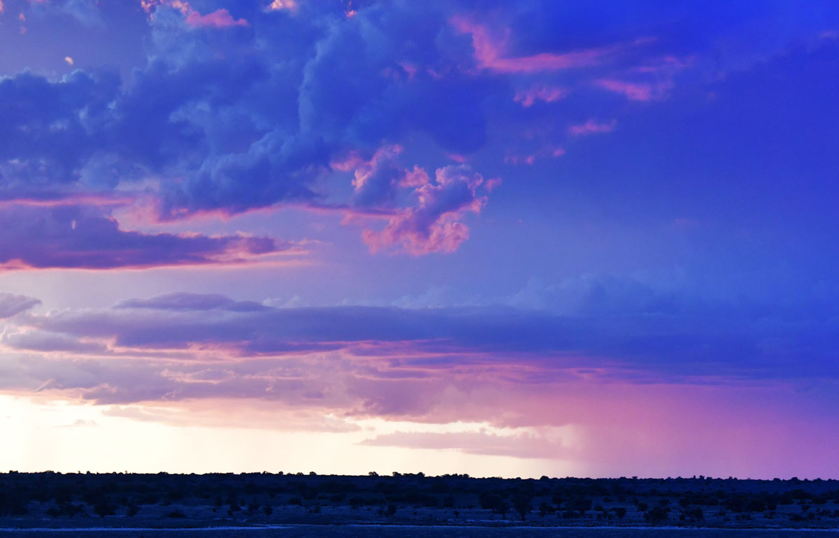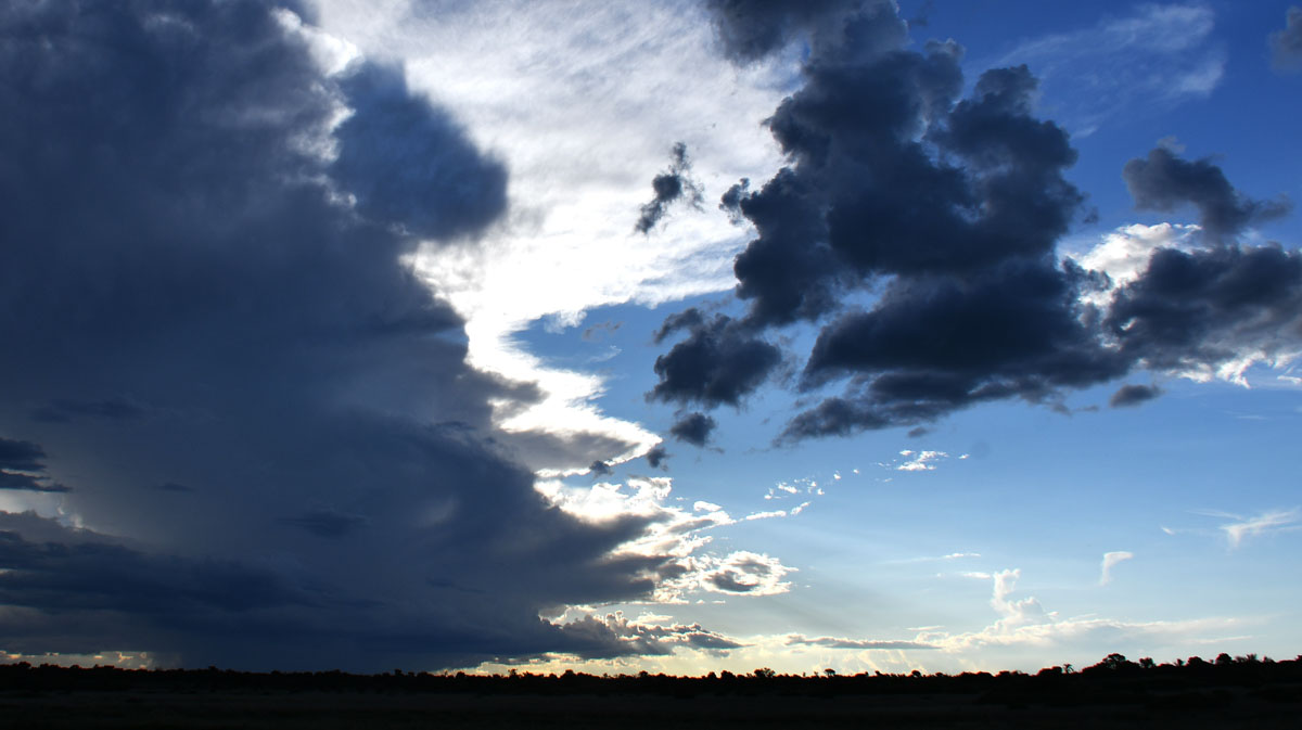 いつも夕方からナミビア側は夕立です ポレンツァにてキャンプ再開 毎日献立を考えて出してくれるティモシーの料理 レッドハーテビースト スプリングボック 暑いので動物たちは木の下に避難 ヌーは水を求めてか移動中です やはり遠くに夕立が見えます 早朝、ポレンツァの水場をテリトリーにしているプライド