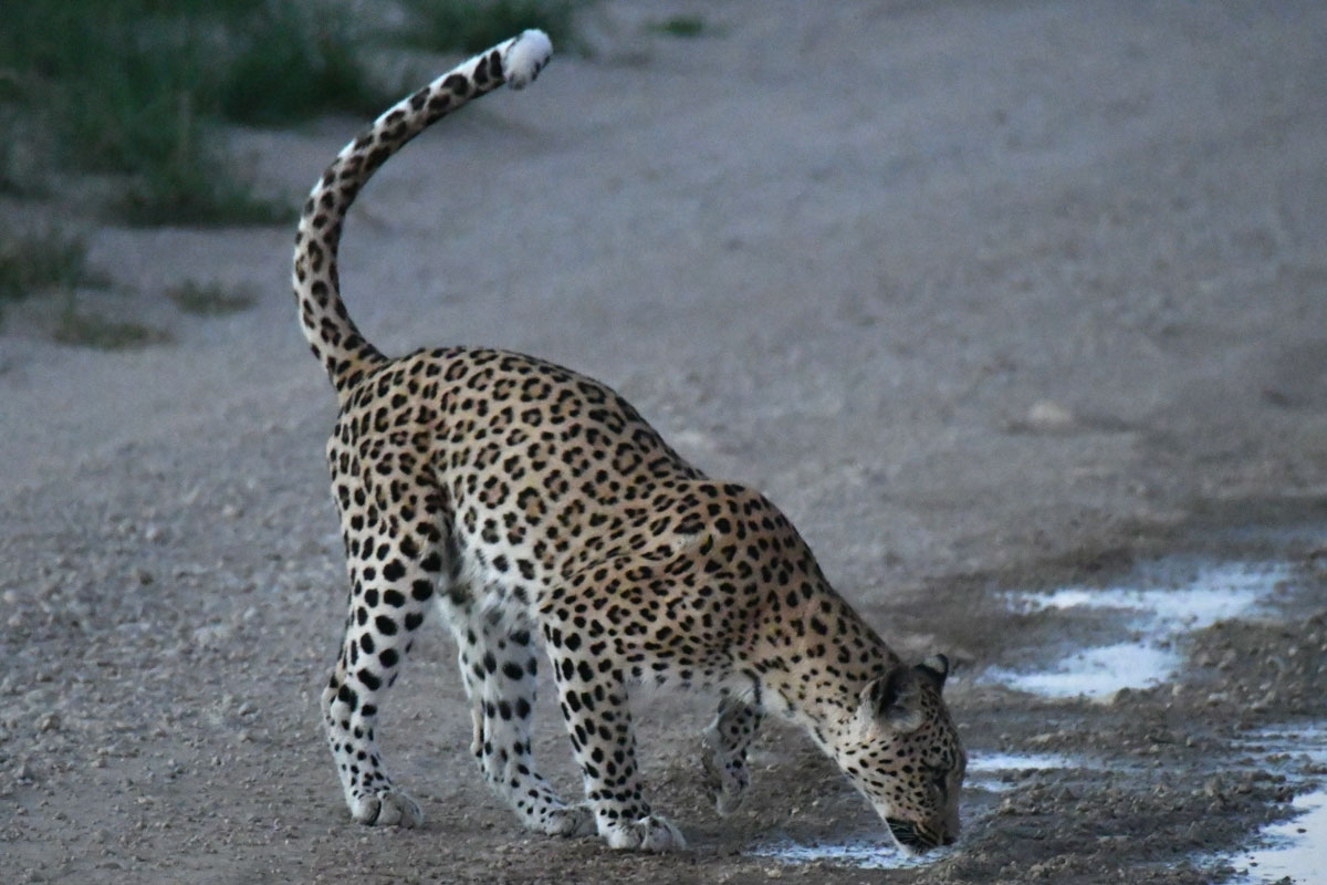 水場に来たジャッカルは様子見です ノッソブ川沿いをユニオンズ・エンドに向けてゲームドライブ コシジロウタオオタカの幼鳥 ダルマワシ ハジロアカハラヤブモズ ナンアチュウノガン ピクニックサイト トイレはいつもきれいに掃除されています トイレの入り口にビブロンヤモリがいました 夕方近くウォーターホールに行くとブッシュの陰の水たまりにブラウンハイエナが涼んでいました。我々を見るとそそくさと消えていきました 夕焼けがきれいですが、やはりシャワーが ルーイプッツへの移動中 やはりライオンは人気があります 事故です アフリカオオノガンが車と当たったのでしょうか? ノソッブ・キャンプ 道路整備用のグレーダーは年々グレードアップしているようです。道はいつもきれいです ルーイプッツのキャンプサイトも新しくBOGAが作ったところです。ゲームドライブに出ていくのには最適なところです。南アフリカのセルフドライブの観光客はトゥイー・リヴィレン・キャンプやゲートから時間をかけてやってくるのに、われわれはほんの数分でライオンやヒョウに出会えるのですから。特にライオンは各キャンプサイトの近くのウォーターホールにプライドがいるので写真には事欠きませんでした。今回は夜の咆哮は遠くから聞こえただけでした。最後の日の夜明け前には前日会ったヒョウがわれわれキャンプサイトのすぐそばまでやってきました。