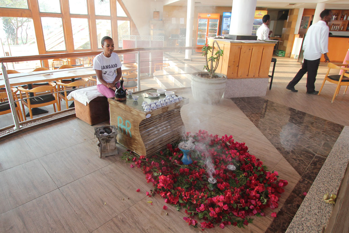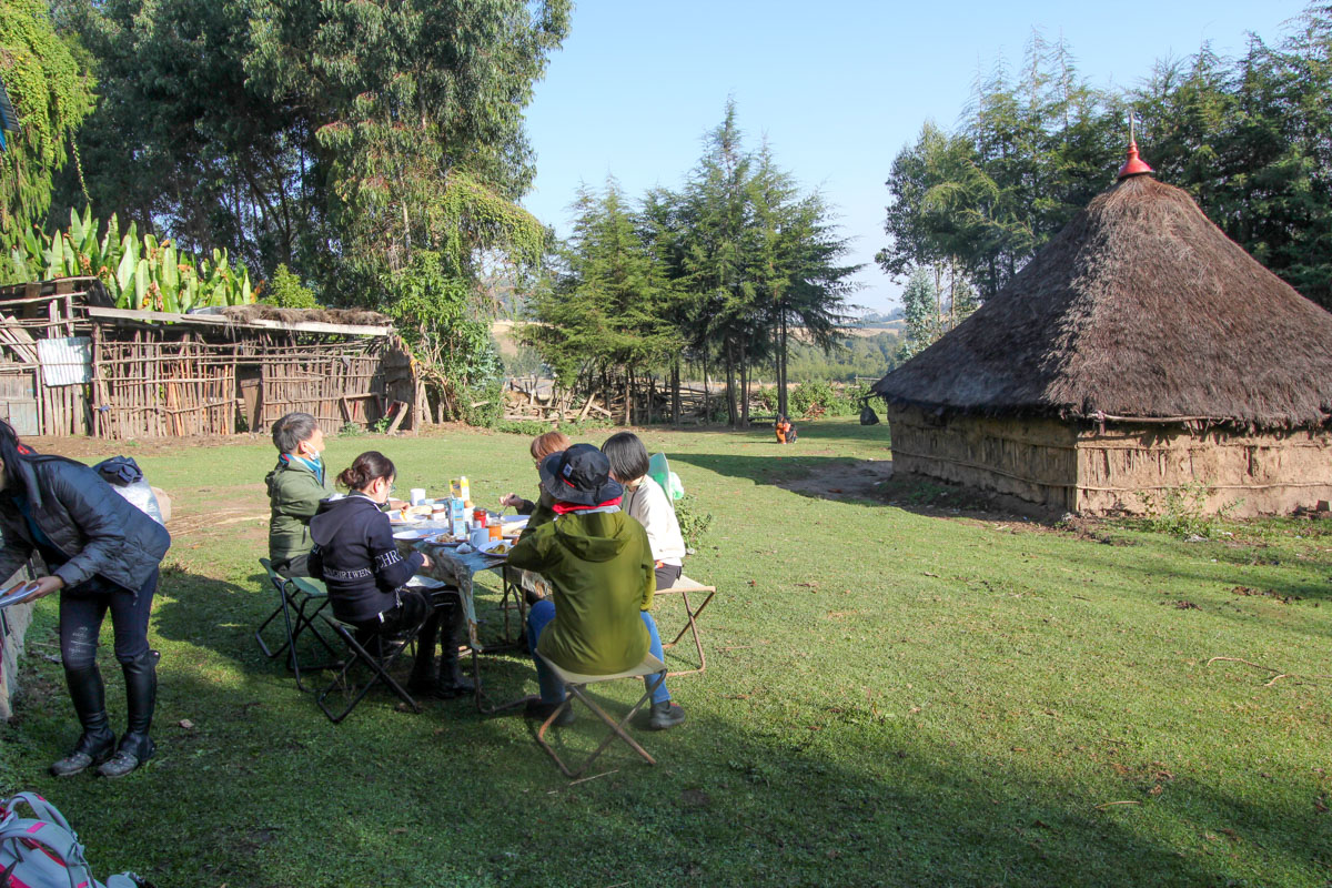 また、サファリの合間にはトレッキングを楽しむこともできました。さらには、休憩がてら、保護区内で働く作業員向けのローカル食堂をぶらっと訪問。エチオピアらしく、コーヒーでおもてなしをしてもらいました。このような行き当たりばったり的な要素も、エチオピアの旅の醍醐味と言えるかもしれません。