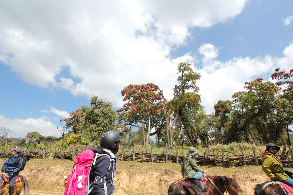午後遅く、目的地のドドラに到着し、ここからホース・トレッキングに出発。景色の良い田舎道を、時折すれ違う地元の人達と笑顔で挨拶を交わしながら、ゆっくりと進んでいきます。なお、本来は3時間程度の予定でしたが、ドドラへの到着が遅くなったこともあり、この日は1時間程度の軽めのホース・トレッキングとなりました。急な予定変更となり、参加者の方々にはご迷惑をおかけし、大変申し訳ございませんでした。この場を借りて、改めてお詫び申し上げます。