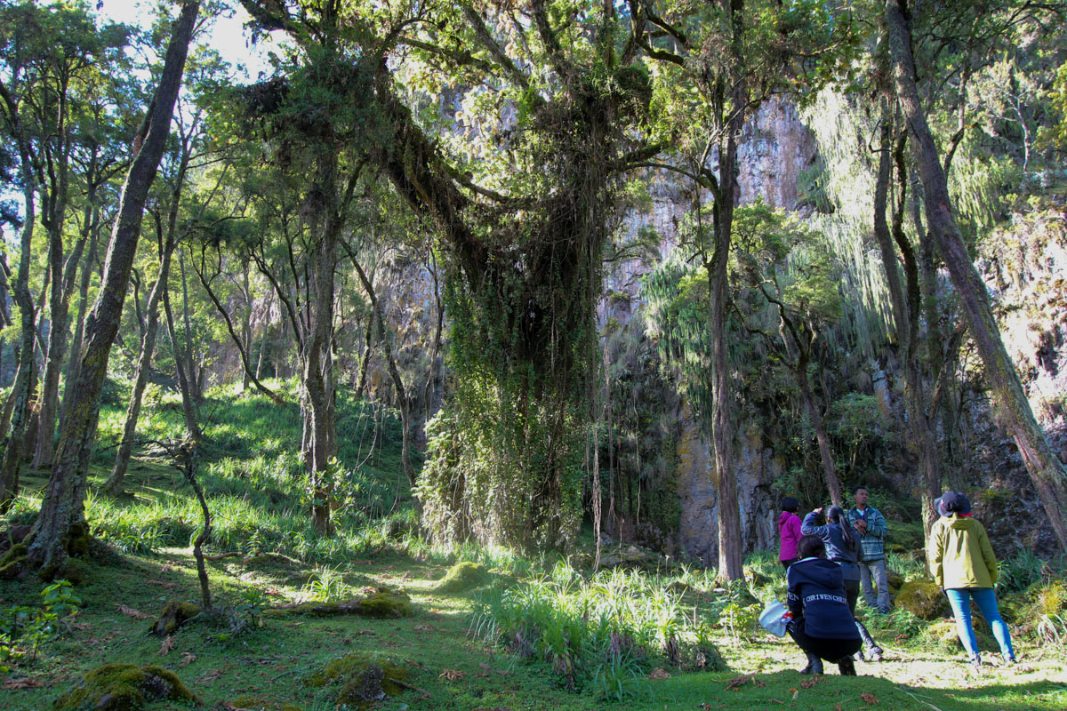 朝、周囲の村人が手伝いに来てくれて、こちらのクルーと一緒に、キャンプの撤収作業をすべて行ってくれました。そこで、私たちはガイドと一緒にキャンプサイトの周囲を散策し、地元の人々の信仰の対象になっているという巨木を見学しました。森は深く、神秘的です。