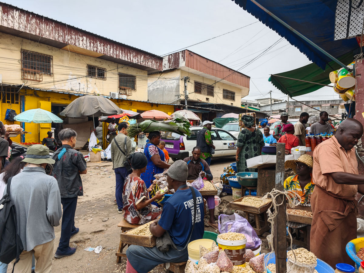 街の観光は、切手を買うために郵便局に寄っていただいたり、サンミッシェル教会を見学したり、1泊後の観光では海岸線に出たり、民芸品マーケットや一般のマーケットを見学したりしました。特に一般のマーケットの雰囲気は、人々の生活がはっきり感じられました。ガボンの治安の良さが感じられる観光でもありました。