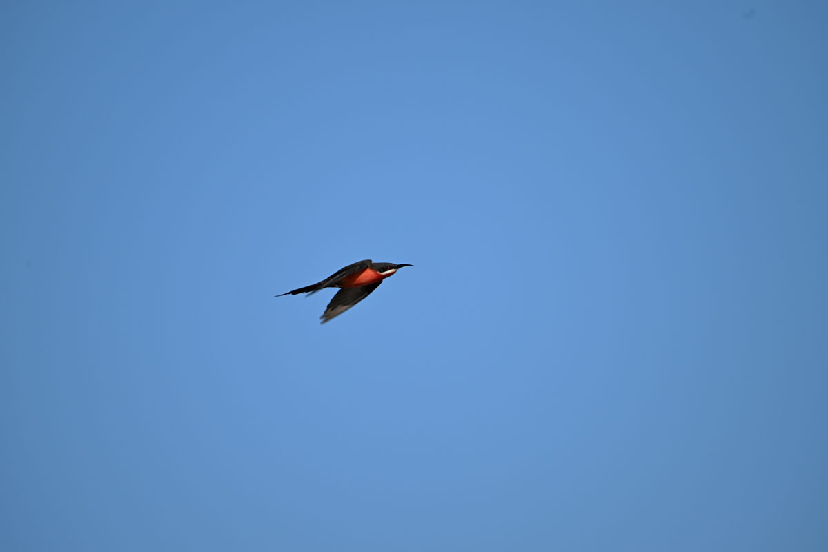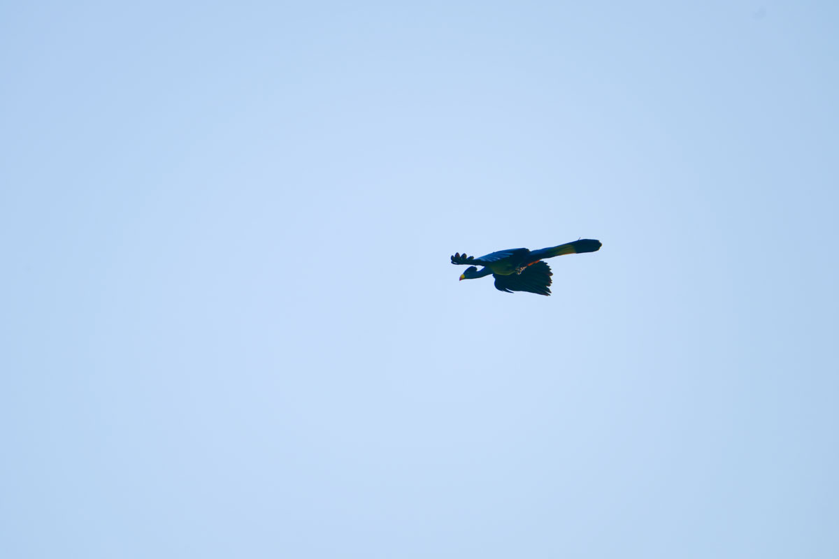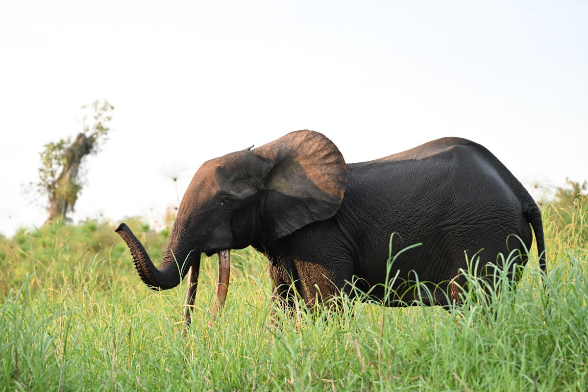 ボートサファリでは、たくさんの野鳥とマルミミゾウを見ることができました。細かく数えてはいませんが、多くの野鳥と出会いました。撮影したかったルリハシグロカワセミやバライロハチクイ以外にも、親子のカンムリカワセミやヒメショウビン、カンムリエボシドリなどの美しい野鳥の写真を撮ることができました。カンムリエボシドリは、ウガンダだと街中にもいますが、海辺近くの熱帯雨林の森を飛ぶカンムリエボシドリの方がより美しさを感じました。絶滅危惧種でいうと、上空には普通にヨウムが飛んでいました。