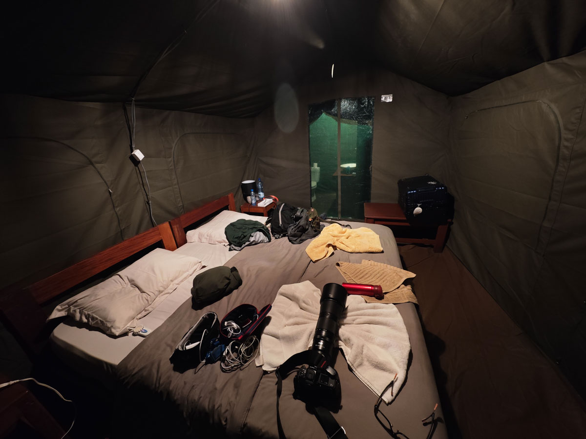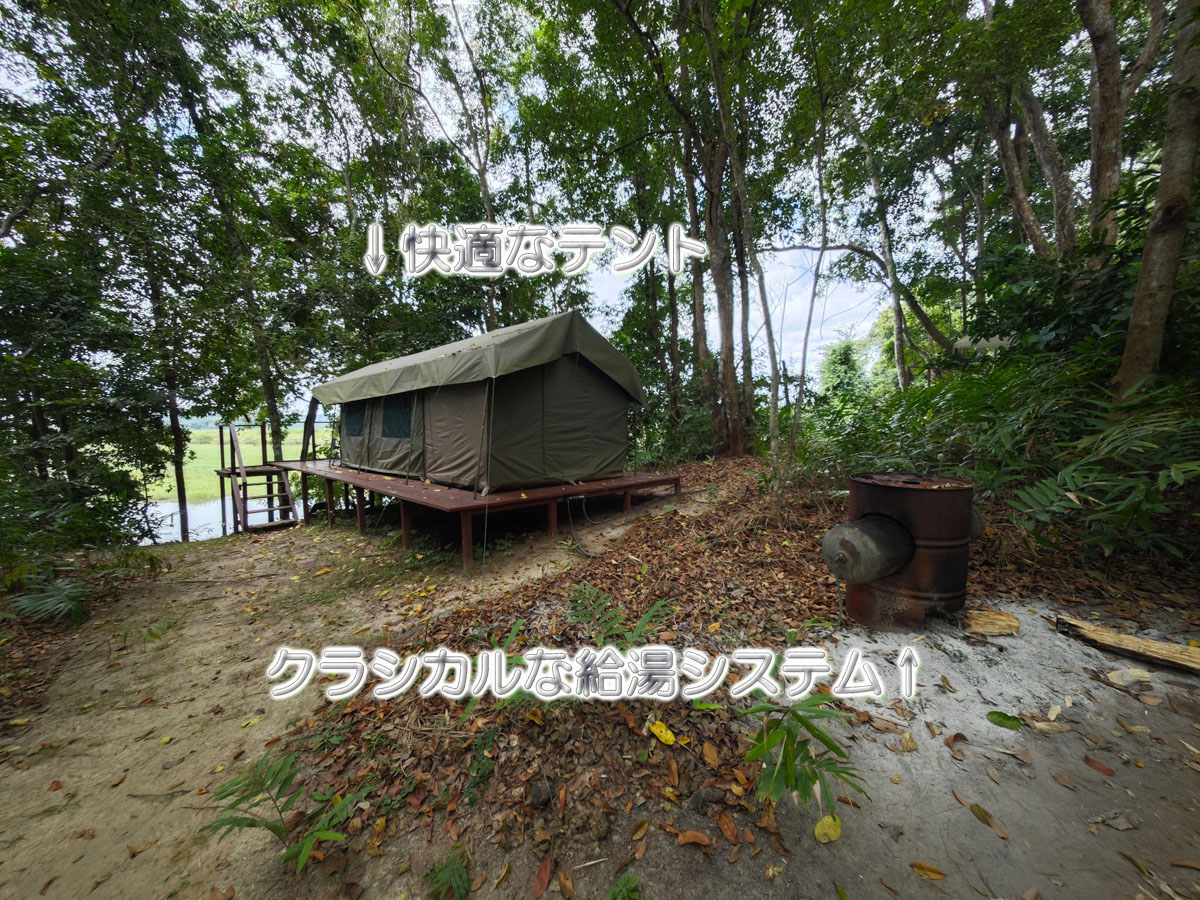 アカカロッヂについては、電気の供給も時間制限あり、基本水シャワーとパンフレットやしおりに書かれていました。実際に行ってみると、電気もある程度の時間は使え(夜10時から朝6時までは使えませんでした)、シャワーもお湯が出ました。離れたところにある小さなロッヂにしては快適でした。給湯器(?)は薪で、薪が燃えている間はお湯が出るというなかなかクラシックなシステムでしたが、シャワーを浴びる時間さえ間違わなければ温かいお湯でシャワーを浴びられました。シンプルなテントロッヂですが、スタッフが作る食事はすべておいしく、満足できるものでした。