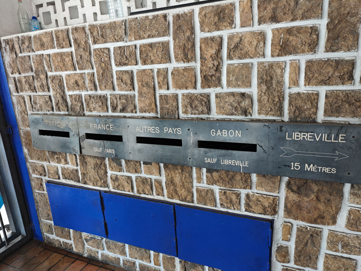 一泊後の最終日は、ポストカードを出すために、中央郵便局まで車を出してもらいました。海外に出るとポストカードを出すことにしているため、切手も買ってハガキも完成させていたのですが、「空港で出すと日本に着くまでに時間がかかるから、中央郵便局までいきましょう」とガイドさんに言われて行きました。旅のしおりには「郵便事情は劣悪で」と書かれており、「届かない場合もあり、所要日数も2週間から1か月」と書いてありました。これを書いている旅行から約1か月後にまだどこにもハガキは着いていません(別の話になりますが、前年にヨハネスブルクの空港から出したハガキは、配達された時期がばらばらで、早いものは一か月、半年程度である程度届き、1年かけて最近届いたハガキもありました)。入国初日に切手を購入した郵便局まで行きました。以前ガボン共和国のブラザビルでも、中央郵便局からハガキを投函しました。その時のポストと同じで、投函口に「フランス」や「パリ」の表記がありました。